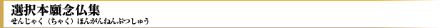 法然(1133〜1212)が念仏についての経・釈の要文を集め、往生の業は称名念仏をもって本とする旨を16章に分けて述べた書。本品は、筆致より鎌倉中期頃の写本と認められる。もと栂尾高山寺に所蔵されていたが、のち越前の浄勝寺に入った旨を記す添書が付されている。