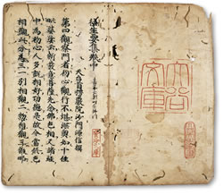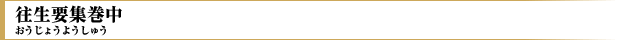 『往生要集』は、源信(942〜1017)が極楽浄土に関する経論の要文を集め、自らの浄土教思想を述べたもので、寛和元年(985)に完成した。本品は鎌倉時代の刊本である。なお収めた黒塗箱の題箋に「浄土教版/往生要集巻中 鎌倉初期刊」と墨書される。