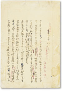 大谷大学第3代学長佐々木月樵(1875〜1926)の入学宣誓式における訓辞の草稿。大谷大学は大正11年(1922)に大学令による大学として認可され、当時の予科3年、本科3年という組織であった。その完成年度を迎えた大正14年(1925)入学式において、その樹立の精神を述べたものである。