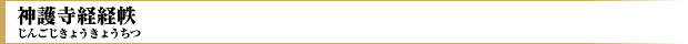 平安時代後期の神護寺経を包んだ経帙。細い竹を色糸で簀に編んだものを芯とし、その表裏や縁に錦などを貼り四隅には金銅の蝶形金具を付け、紐を付ける。優美なもので平安貴族の美意識を反映した品といえよう。なお久安5年(1149)の墨書をもつものがある。