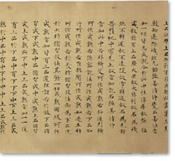 光明子(701〜60)が父母追善のため書写させた一切経の零巻。天平12年(740)5月1日付の願文より五月一日経と称される。皇后宮職系官営写経所で天平5年(733)頃から天平勝宝8歳(756)頃まで書写され、総巻数7000巻にのぼった。本品は天平11年(739)に忍坂成麻呂の書写にかかる。